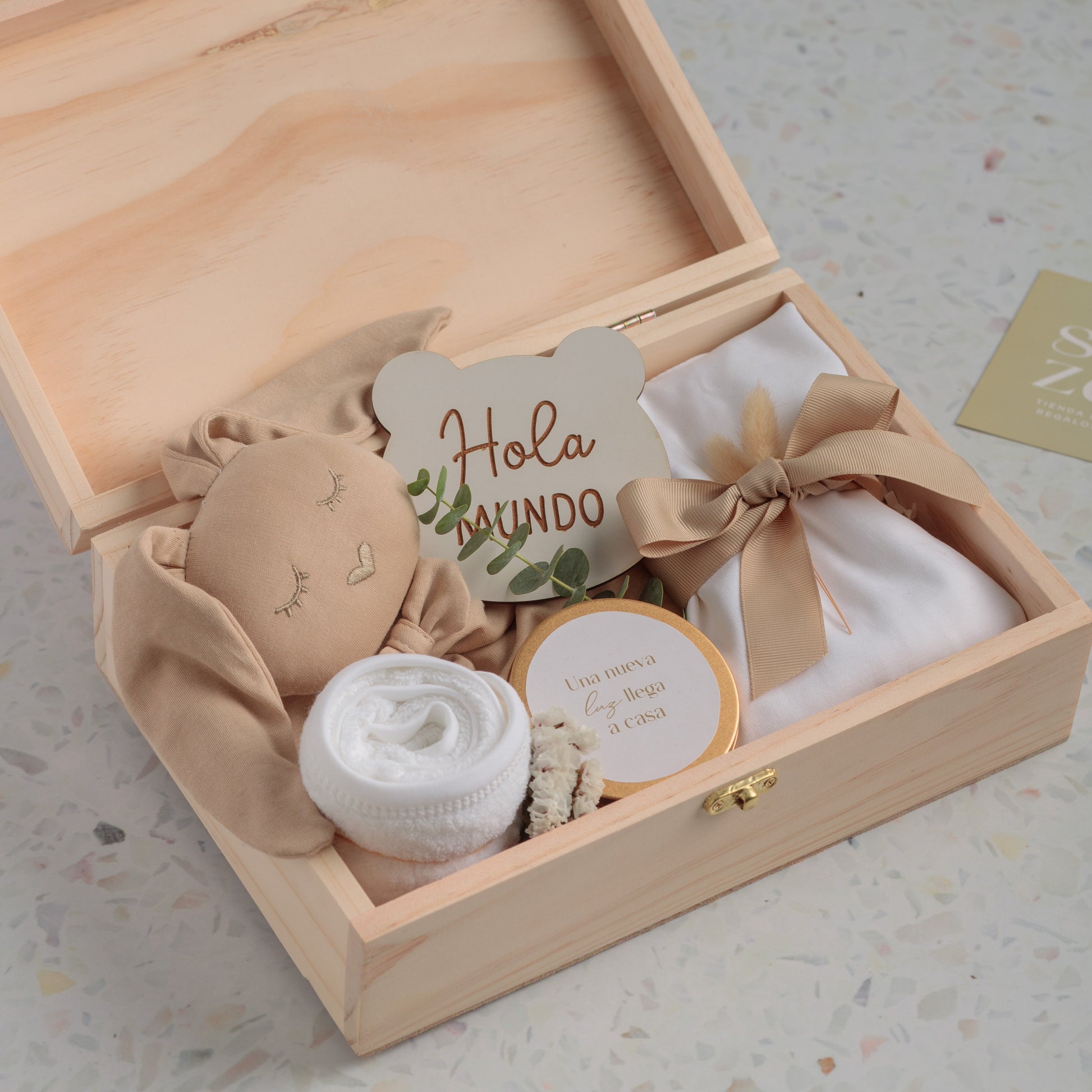 Pack Bebé: Cofre de Pino, Babita, Body & Conejo de Apego