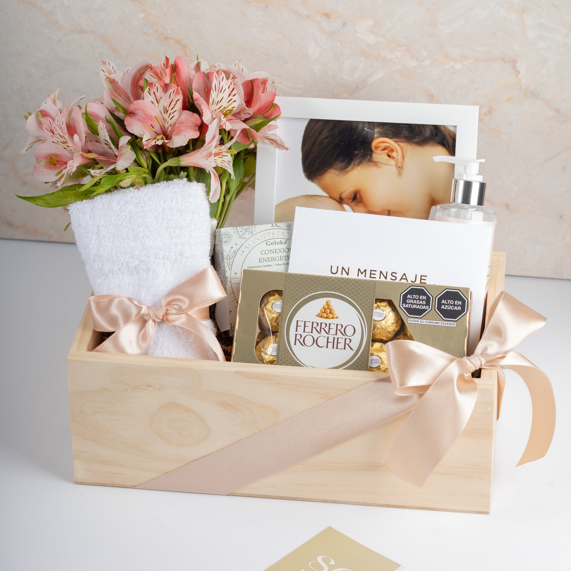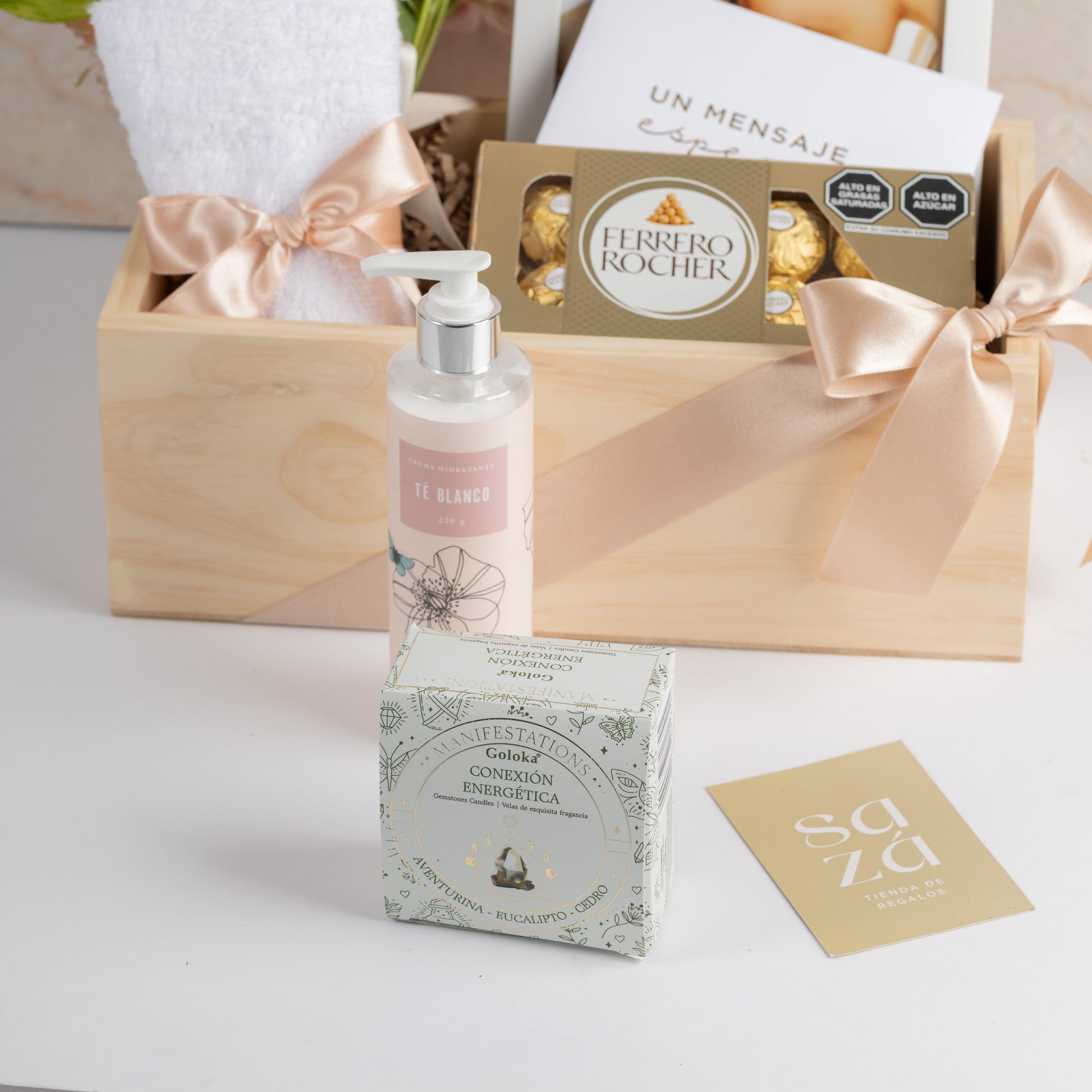 ¡Un regalo distinguido y completo! Esta canasta premium combina belleza, cuidado personal y sabor en una presentación elegante.